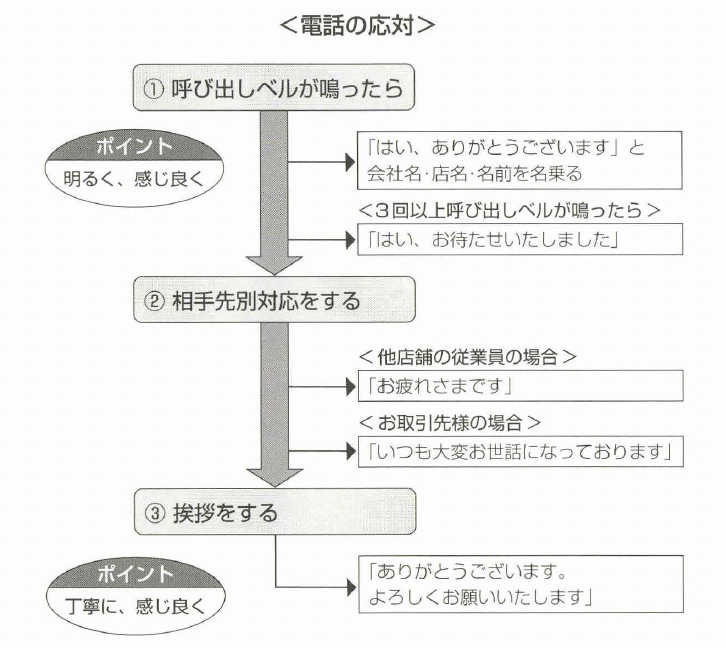 これは、複雑な構造のものではなく、例えば「電話応対」などの『マ ニュアルJでもよく見かける。