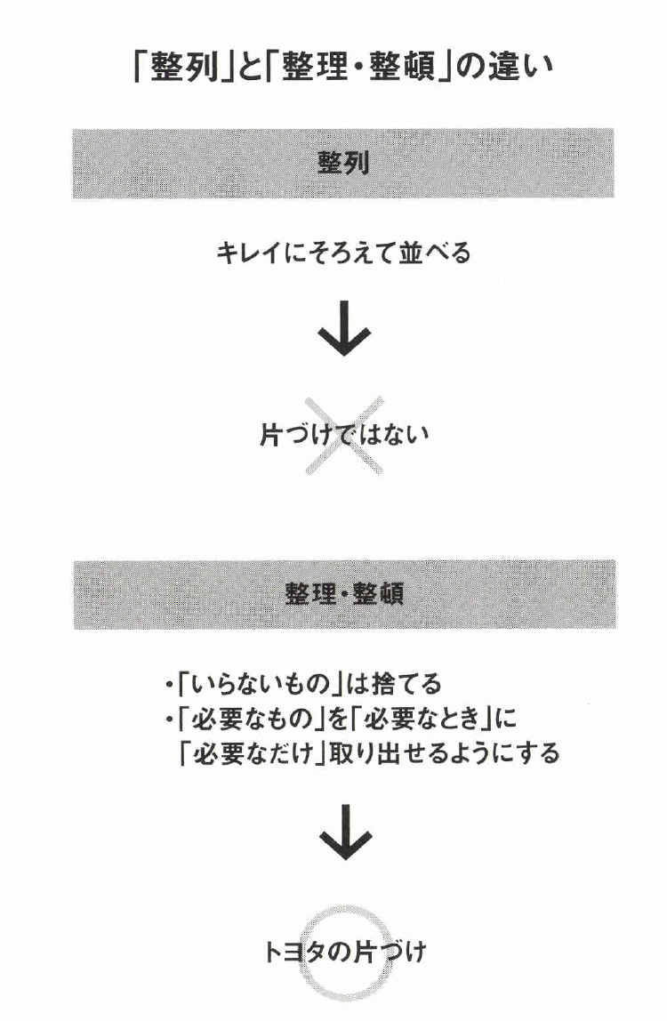 モノを右から左へ移動させ、キレイに「整列」させることは、トヨタでは片づけとはいわない。まずは「整理」「整頓」の定義をはつきりさせる必要がある。