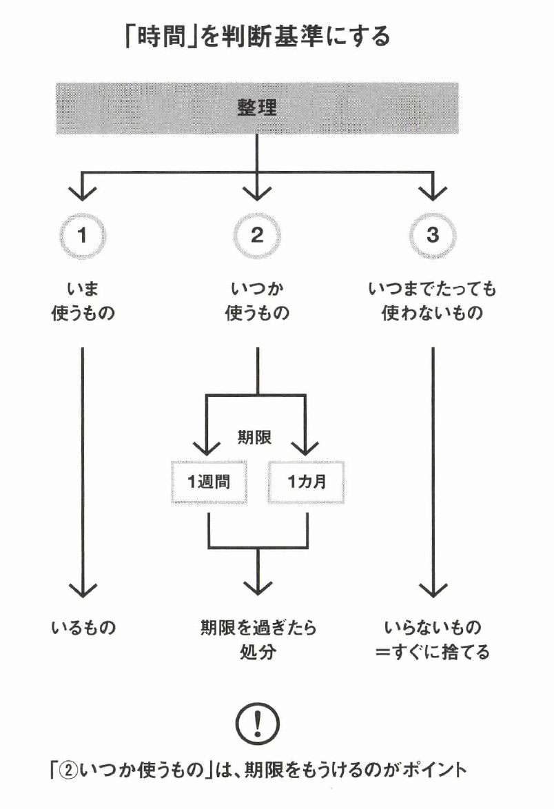 それを過ぎても使われることがなかつたら、3つ目の「③いつまでたっても使わないもの」へと格下げする。そして捨ててしまう。これが原則です。