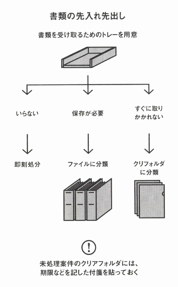 「終わると同時に処分」を徹底して行っていけば、デスクの上に書類が山積みになることはありません。