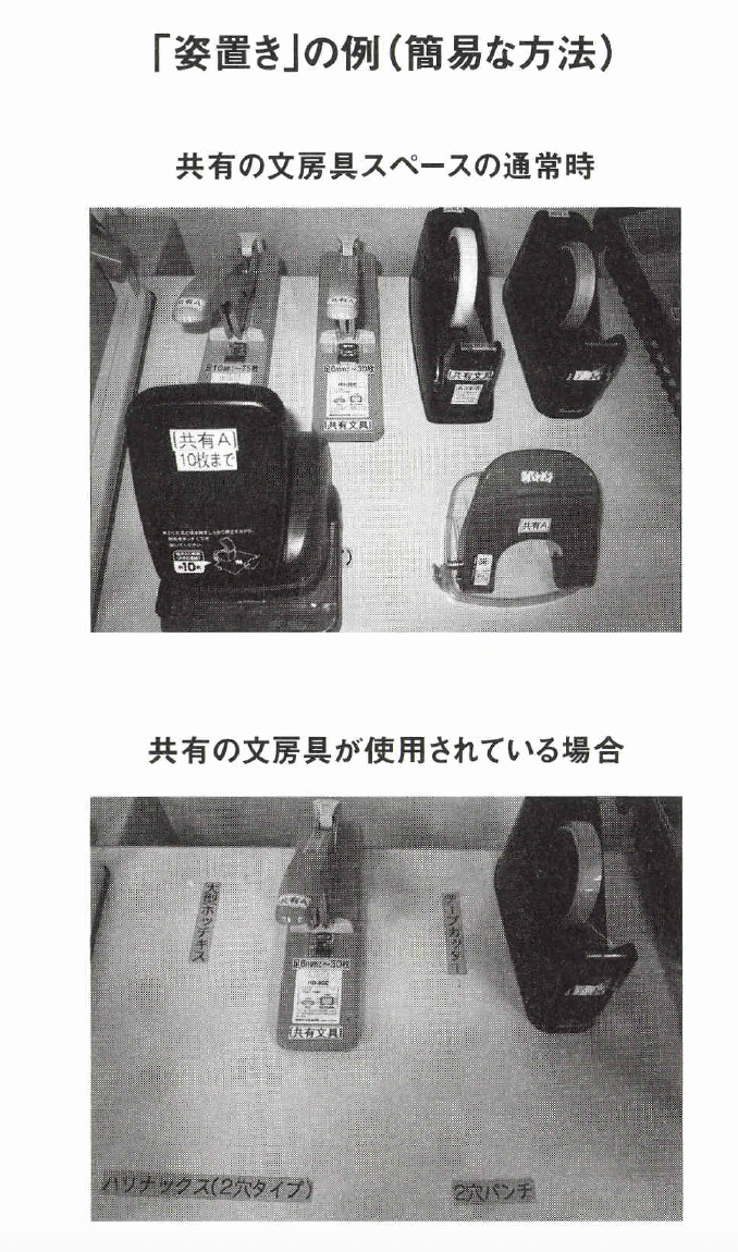 もちろん、こうした姿置きのしくみは、個人のデスクの上や引き出しの中でも応用できます。