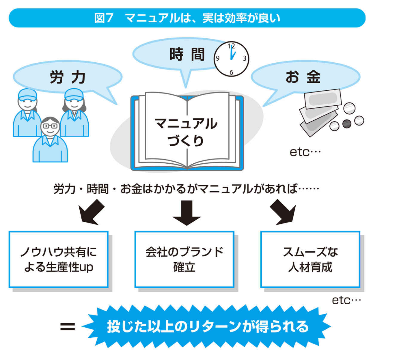 このように、最新・最高のノウハウを誰でもできるように標準化したものが、マニュアルなのです。